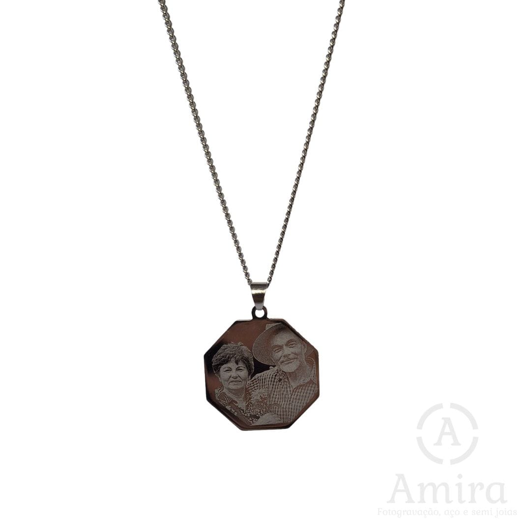Colar com Pingente Octagono com Foto – Joia em Aço antialérgico